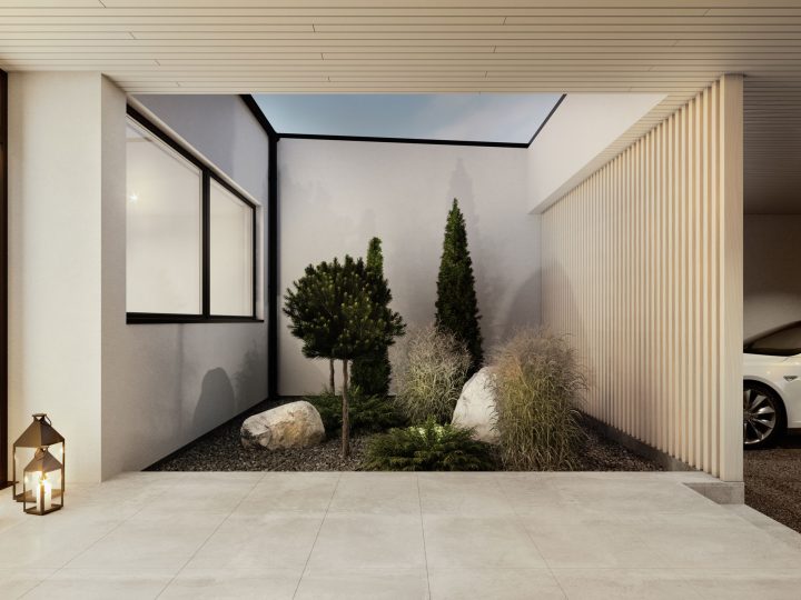 Korona edustaa aikaa kestävää pohjoismaista arkkitehtuuria, johon on tuotu 70-luvun tunnelmaa atrium-tyylisellä sisäänkäynnillä ja takapihalla. Koronan suunnittelun yksi kantavista teemoista on läpinäkyvyys. Keittiöstä ja olohuoneesta on vapaa näkymä asunnon läpi. Luonto ja maisema ovat koko ajan läsnä ja luonnonvalon määrä on maksimoitu. Korona valmistui loppuvuodesta 2019, jolloin uudet asukkaat pääsivät viettämään joulua uudessa upeassa kodissa.